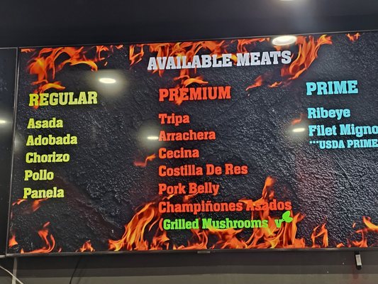 Charcoal-grilled Mexican meats, tender ribeye, flavorful asada