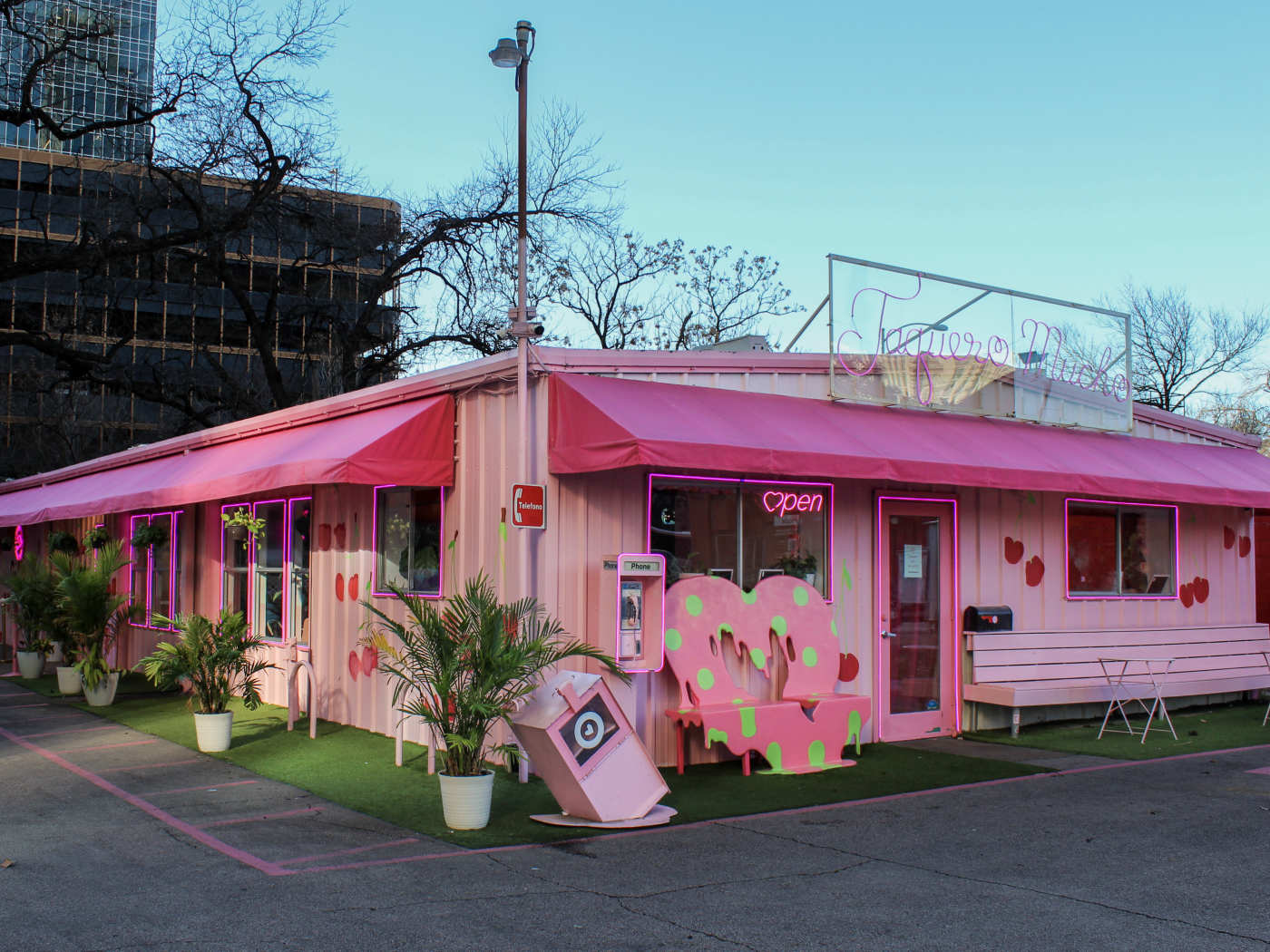 "Taquero Mucho describes itself as “a cute pink taqueria in the heart of Austin, Texas,” and as much as we tried, we couldn’t come up with a better description. You’ll probably notice the pink neon sign beckoning you in from West 6th Street before you even see the building. But despite looking like a Glossier flagship store, Taquero Mucho doesn’t rely on novelty alone—it’s a real taqueria that just doesn’t take itself too seriously. Order some queso flameado to find out just how stretchy cheese can be, get some enchiladas covered in griddled cheese, and pair it all with some Anti Bitch Juice—a frozen strawberry rosé that comes served in a pouch. " - nicolai mccrary