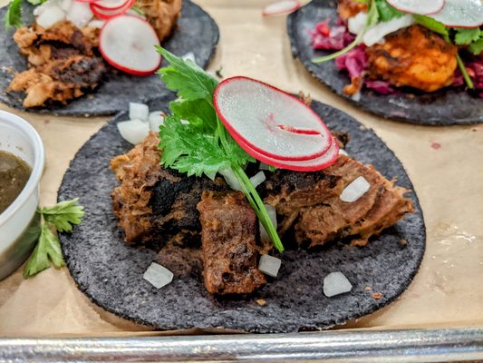 "When Steve Santana launched his humble taco stall in 2014, he probably didn’t imagine just how popular it would get. The web developer-turned-chef was one of the first in the city to nixtamalize, grind, press and griddle his tortillas in-house, and now look—the breezy location in North Beach is central command for a recognized brand that sources corn from small farms in the Midwest and supplies restaurants across the city. Signature blue corn tortillas wrap around a host of fillings, like melting lengua or fried mahi, all garnished with radish, onion and served with sharp salsas (ask for the charred jalapeño).With palm trees swaying throughout and the lure of the ocean just one block away, this beachside favorite is a Miami mainstay for good reason." - Michelin Inspector
