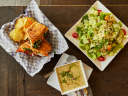"We’re big fans of the mountainous caesar salad at this Lower Haight cafe, so it’s no surprise that their CCW bundled inside of a slightly crisped-up tomato tortilla is also a winner. There’s a wheel’s worth of shaved parmesan, hunks of chicken breast, and the crouton bits somehow stay crunchy in the generous amount of dressing. Each half is also about the size and width of a genetically modified russet potato, and the plate comes with chips, so expect to leave full." - julia chen 1, patrick wong, ricky rodriguez