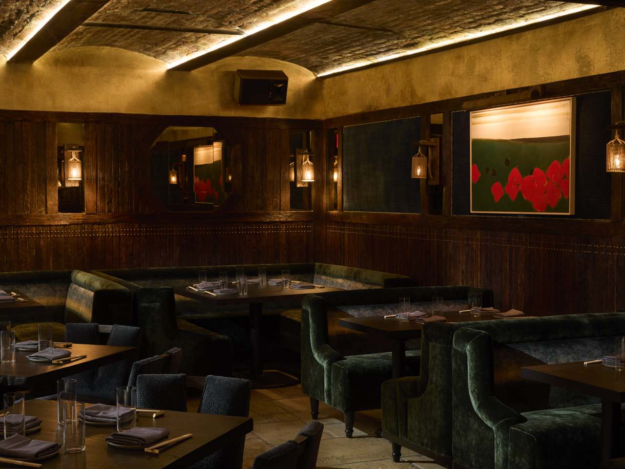 "This Japanese restaurant below the Hotel Chelsea is ideal for a secret rendezvous—it’s moody and dim, even when the sun’s still shining outside. Amid all the dark wood hang eight paintings by the late artist and former hotel resident Teruko Yokoi, for whom the restaurant is named. But this space also used to be a nightclub, and it’s retained a whiff of that sex appeal. Sure, you can come for a splurgy, elegant dinner of Miyazaki wagyu (sourced from a famous farm), superbly crispy red snapper, or a smoky-sweet, head-on prawn straight off the robata grill. But if you just want to wear something shimmery, sip a pickled-ginger martini or some Japanese whiskey while basking in a buzzy, subterranean scene, Teruko works for that, too. photo credit: Teruko photo credit: Teruko photo credit: Teruko photo credit: Teruko Pause Unmute" - Molly Fitzpatrick