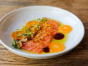 "A chef-refined take on chowder that uses Berkshire pork belly and herb oil for a slightly atypical but polished flavor; the kitchen also transforms the chowder into other applications—straining it into a maple-lemon-chive gravy for buttermilk fried clams and waffles finished with candied bacon, and using it as the base for a long-standing “Chowda Flatbread” topped with crème fraîche, house-cured smoked bacon, chopped clams, fingerling potatoes, cheese, oyster crackers and chives (guests can even add caviar for extra decadence)." - Adam H. Callaghan