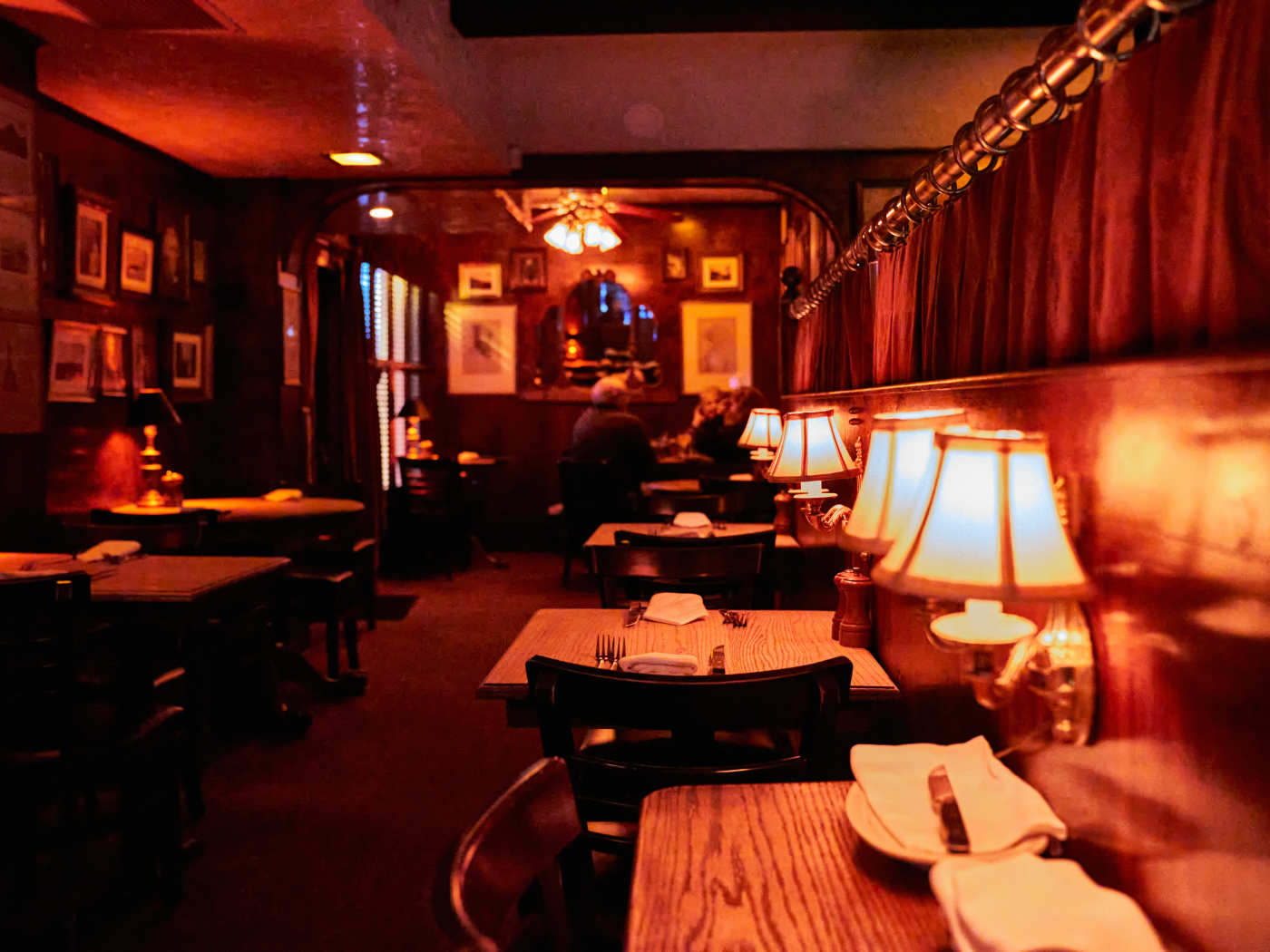 "Brazen Head is probably the only place in town where you can roll in at 11pm, and gobble up perfectly charred NY pepper steak, some cheesy french onion soup, and marinara-drenched meatballs that are the comfort equivalent of Lenny Kravitz’s blanket-scarf. The Cow Hollow steakhouse has no signage out front and everything we want in a late-night spot that looks like an 1800s Scottish pub: paintings of bearded old men, velvet curtains, a dim red glow, sports bobbleheads for kitsch, and strong cocktails that pair well with stories that begin with, “Back in the day...” No wonder Brazen Head’s been firmly rooted here since 1980. Food Rundown photo credit: Erin Ng New York Strip Pepper Steak Could this steak use more salt? Sure. But that shouldn’t deter you from passing on this perfectly cooked piece of meat with nicely charred edges and perfectly light jus. Buttery green beans and mashed potatoes complete this hearty dish. Caesar Salad This salad is roughly 50 percent shredded iceberg lettuce and 50 percent cream dressing, with some tiny croutons throughout. Unless you failed to meet your vegetable quota for the day, there’s no need for this. Lobster Ravioli Feel like gobbling down carbs and cream? You’ve zeroed in on the correct dish. These generously stuffed ravioli are drenched in thick herb sauce. photo credit: Erin Ng French Onion Gratinee We love this dish. Light yet flavorful broth, rich carmelized onions, and funky gruyere come together to create a cheesy, salty, and sweet moment. Bread Pudding A La Mode Looking for a way to saturate the blood in your veins with sugar and even more cream? End the night with this. The dense bread pudding is one of several on the long dessert menu that is actually made in-house." - Lani Conway