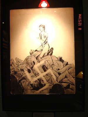 There are few non-photographic artifacts, but one which literally brought tears to my eyes was a large, very fashionably dressed doll, in pristine condition. The doll was a gift from a family member returning to Poland from foreign travel, and was obviously cherished and well cared for by the little girl to whom it was given. As the Nazis closed in, the doll was hidden in a closet before the little girl, and her family, were rounded up for transport to a concentration camp. Many years later, a surviving family member was able to retrieve the doll from that closet. The doll's eyes were bright with innocence, and the energy of youth, yet her facial expression seemed to convey a sense of having witnessed events which betrayed her youthful innocence. I found this to be a deeply moving display.