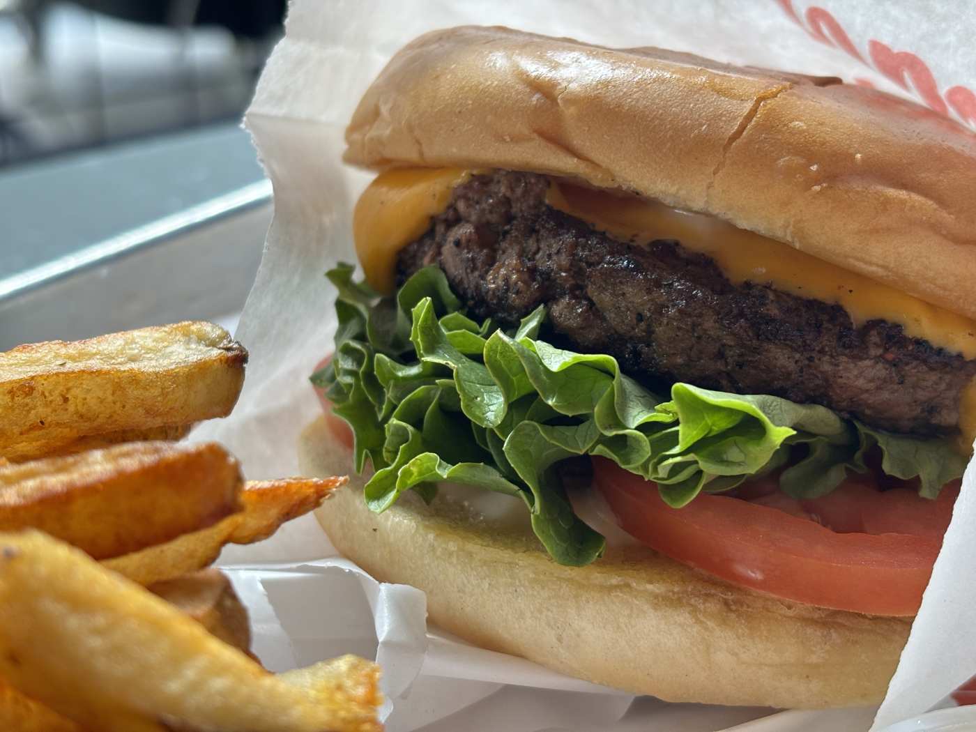 "The Burger Joint is as close to a grilled backyard burger as you can get in the middle of Montrose. The counter-service patio restaurant makes basic griddled burgers. They’re heavy on the salt and pepper seasoning, with lettuce, tomato, and thick wavy pickles. But you can also get double patties smashed with kimchi or lamb burgers with tangy tzatziki. Even though nothing here will turn you into a Burger Joint convert—unless you end up here at 3am after a nonstop tour of the bars on Fairview—the food is solid. And while this street corner backs up with constant traffic, Burger Joint’s patio is lined with so many giant fans, big-screen TVs blaring sports games, and umbrellas you probably won’t even notice. Food Rundown Fries Whatever kind of potato Burger Joint sources for these hand-cut fries must be the size of a baby elephant. These fries are long, with a pleasantly seasoned crust, and pair great with the house garlic aioli. photo credit: Chelsea Thomas Classic Burger This burger is a backyard classic. The patty itself has a heavy dose of griddled salt and pepper, a.k.a. the proper amount of seasoning. And the best thing about this burger is the thick, wavy-cut, sharp-as-nails pickles. No smooshed, squishy pickles that congeal to the inside of the bun. These pickles are fresh and crunchy, just like the lettuce and tomato. photo credit: Chelsea Thomas" - Chelsea Thomas
