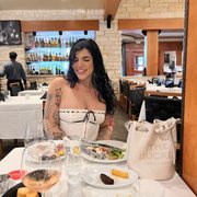 After I completed my entree our original server came by to clear our plates. I requested the bill, told him we were not interested in dessert. He delivered the bill. I was gifted a gift card by my employer which I presented to our server and told him the amount that was on it. I also gave him my credit card to apply any remaining balance. It took awhile for him to return with my check and he approached our table and said his manager needed to handle the gift card portion and she would bring us our receipts. She arrived a few minutes later and presented us with a dessert and apologized for the bad experience we had and promised next time we visit it will be perfect. Although the dessert gesture was appreciated, we were full and already made it clear to our server we did not want dessert. So we felt obligated to take a few bites.