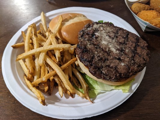 The main burgers were unfortunately just alright. Very much a simple presentation with minimal compositions to distract from the patty (cheese is an add-on that we both opted for, but it was quite mild and didn't add too much). The elk was done rather dry/lean (also my patty broke apart and they still served it so...). The bison was well done, very lightly seasoned and slightly dry. Not a great burger experience even with the notable gaminesss of the different meat.