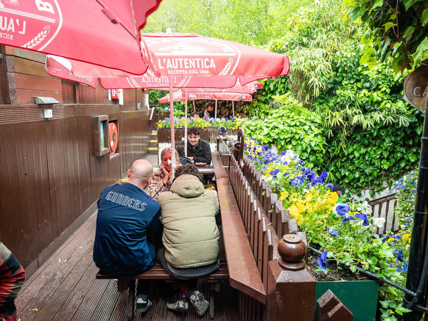 "The Faltering Fullback’s garden looks like an M.C. Escher print that was made after he’d been on the Stellas. This is simultaneously one the best and worst outdoor spaces to drink in London. Best because the Finsbury Park spot has loads of different areas, tables, and hidey-holes for groups big or small looking for some of the best Guinness in the city and a Thai curry. Worst because, well, multiple steps aren’t ideal if you’ve been sinking drinks for an entire afternoon." - jake missing, daisy meager, heidi lauth beasley