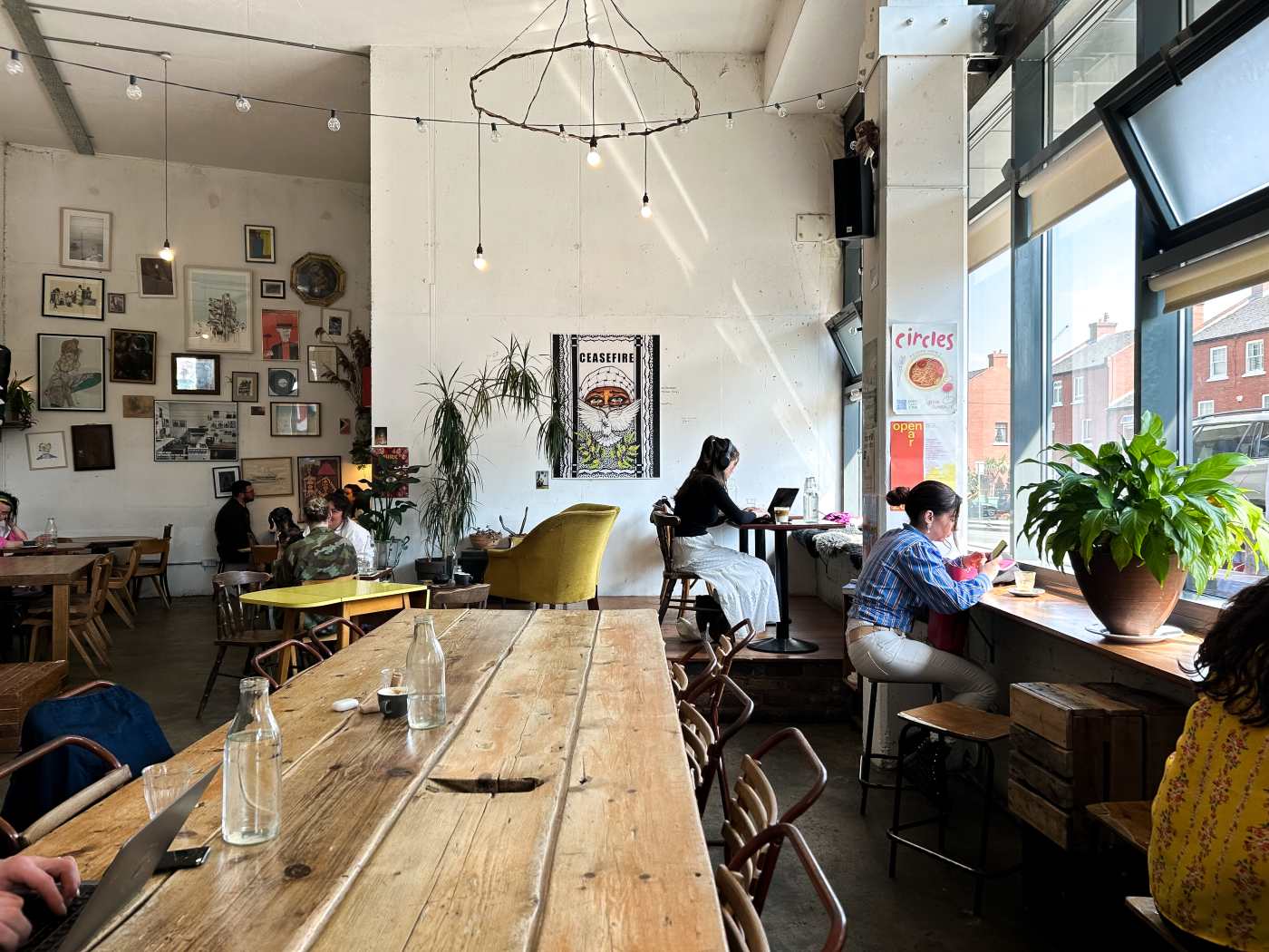 "Once you get settled at The Fumbally, a community cafe in The Liberties, it’s difficult to leave. Whether you’re catching up over excellent coffee from a local guest roastery, working on your laptop, or attempting to work but really people-watching, the lofty, art-filled warehouse space and chatty staff encourage slowing down. Linger over a plate of cheesy scrambled eggs on toast, stay for a cookie, and browse the deli stuffed with freshly baked loaves, condiments, and wine. A loaf of their in-house-baked sourdough makes an excellent souvenir if you’re visiting Dublin." - daisy meager, jake missing, ciera velarde