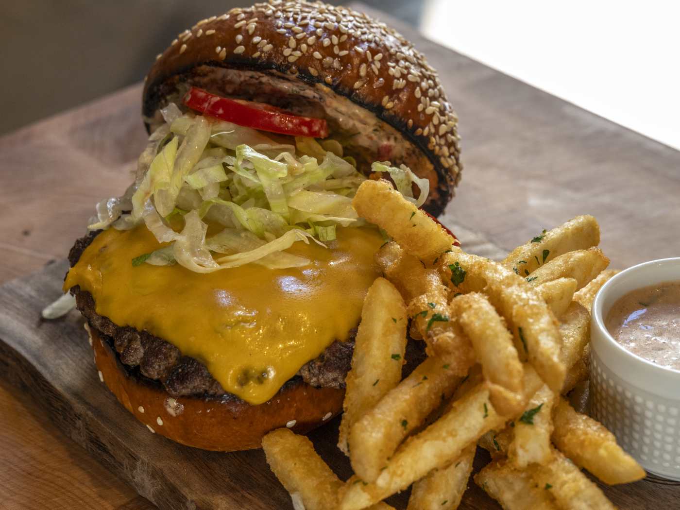 Juicy burgers, loaded latkes, chicken sandwiches, breakfast all day