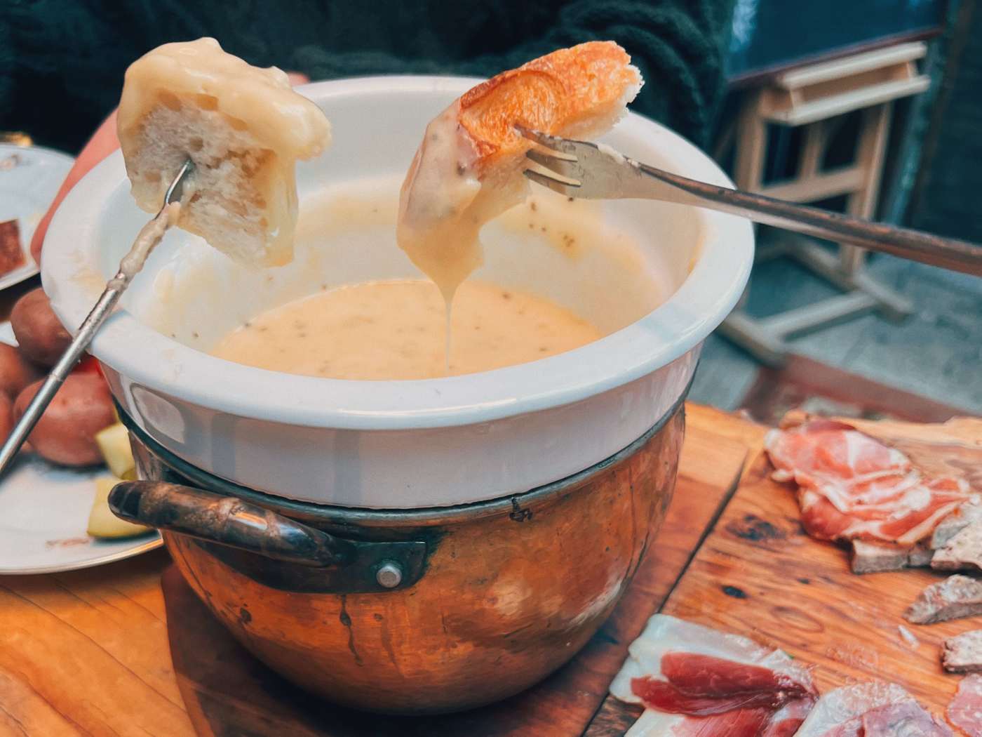Traditional Swiss fondue, raclette, Swiss wines & unique gondola table