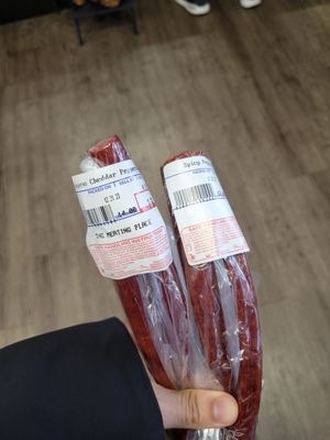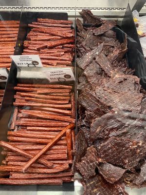 First, let's discuss the butcher counter. It's filled with gorgeous prime cuts of regional and imported meats. Lamb from Reister Farms, kobe and waygu beef from Japan, local pork, all cuts of steak from Painted Hills, in-house dried steak, ground elk, beef kabobs, chicken (even seasoned and prepared) house made sausages, bacon, ham, and Dungeness crab when in season. All higher quality than you would find at a grocery store. Because of how they anre raised and fed, they are healthier for you, and yes, you can taste the difference! They even have house made entrees, dips, sides, and sell various salts and rubs. This is my kind of store!