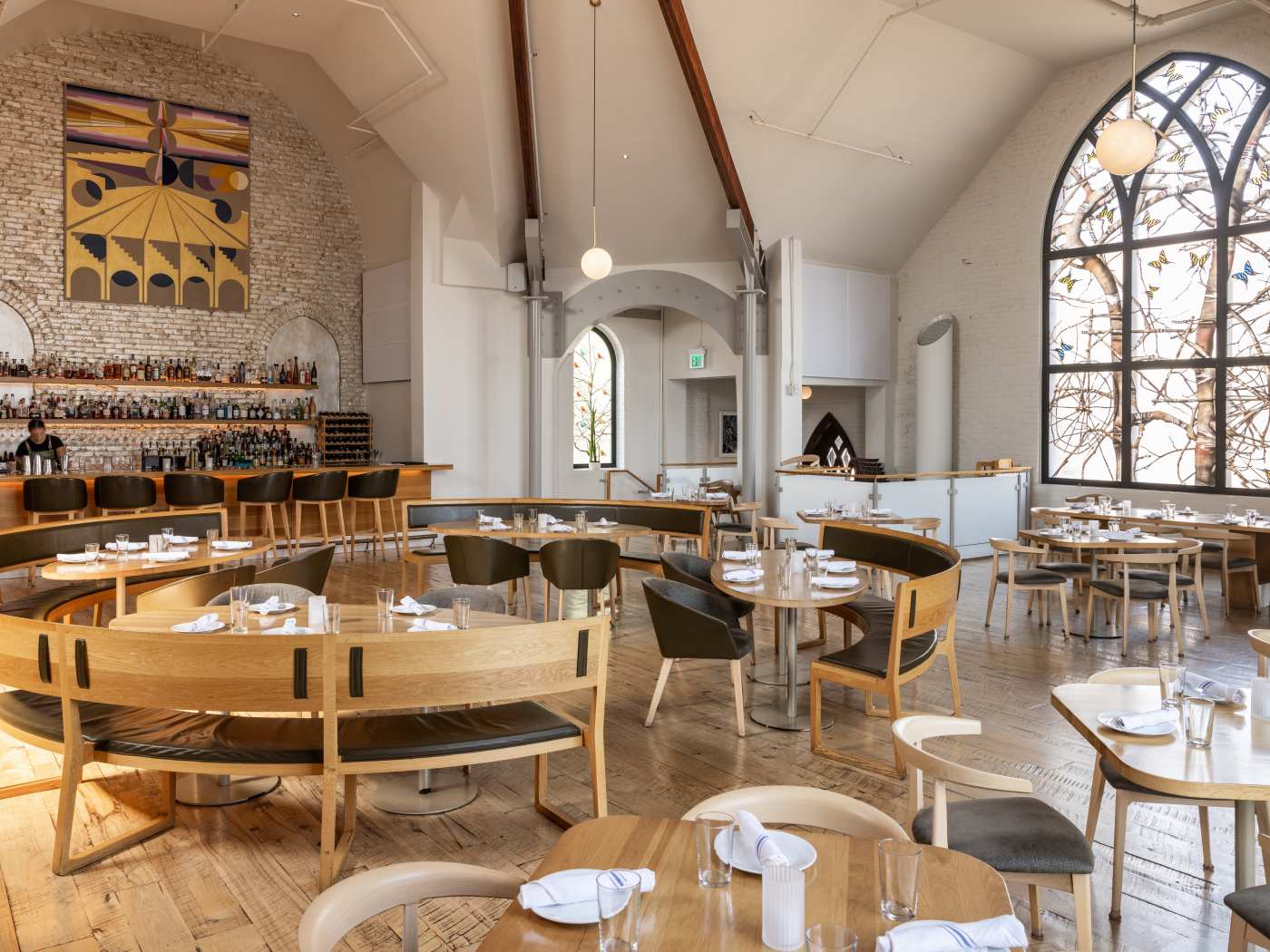 Amazing ambiance! The interior decor is simple, clean, and the stained glass windows provide a church-like feel. There are limited tables, but it gives an intimate feeling with small groups or with your partner. The ambiance elevates the dining experience, transporting guests to a tranquil oasis where they can unwind and savor each moment spent in the company of loved ones.