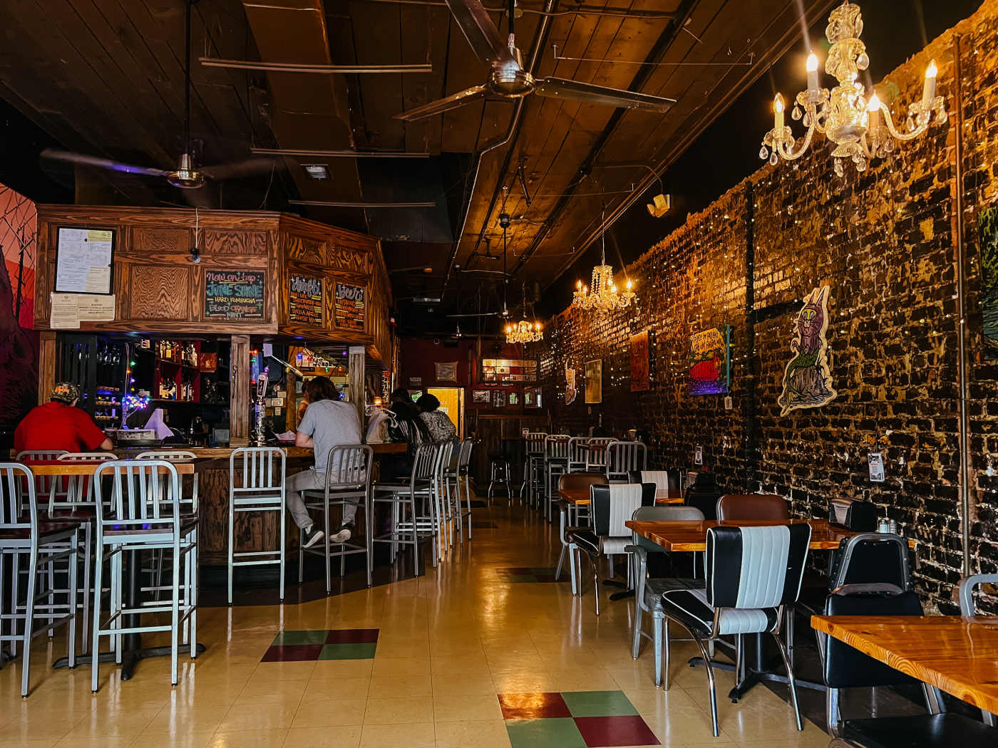 "A mainstay on Ponce since 1996, this dive bar right next to the Plaza Theatre has become an institution for cheap beers and good food. Dinky chandeliers hanging above the high top tables are more about funny aesthetics than practical lighting since the dimness helps to hide the very lived-in feeling of the bar. Young people are usually spilling outside of the tiny interior onto the sidewalk for a little more air. With a space so small, serving food seems like it would be too chaotic. But thank heavens you don’t need a lot of arm space to eat most of The Righteous Room’s munchies like their solids hot dog, wings, or nachos." - juli horsford