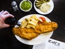 So we arrived and I was thrilled!!! It was quite slow when we walked in. My excitement may have been much for them as I felt the need to tell them I travelled all the way from Miami FL to try the Fish n Chips. When we ordered, they were taken from the display rack and right then and there I got a little nervous as I just assumed it would be fresh and crispy. Fries were grabbed in another area in which they have been sitting there as well. So there goes freshness. But still, maybe their batter withstands the air and maintains the crispiness or maybe I was just optimistic in thinking they would not serve anything that was not up to par. We ordered to go and walked a few blocks to a park to eat as the weather was delightful.