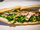 "Tommy DiNic’s makes two versions of roast pork: one with sliced meat and another with Italian-style pulled pork. Though we prefer the latter, both are beautiful messes topped with broccoli rabe, provolone, and long hots. You're going to wait in line at this busy Reading Terminal Market spot. But the sandwich is worth the patience. If there's no seating in RTM, you can take this thing to go without worrying it'll sog and fall apart." - candis mclean
