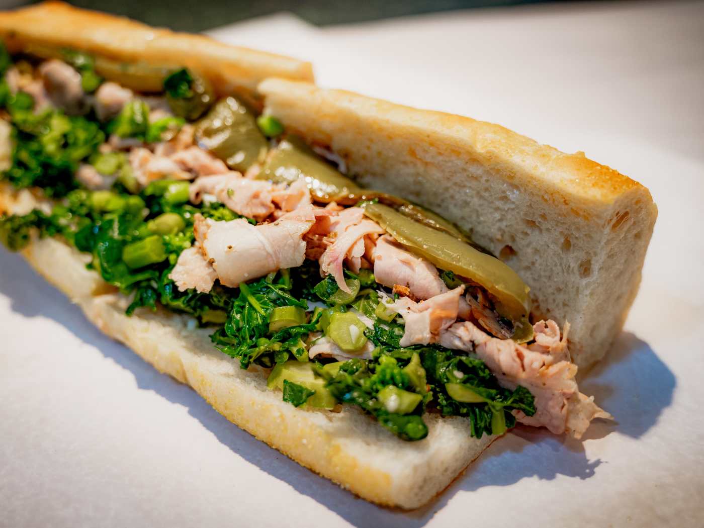 Roast pork sandwich with broccoli rabe and sharp provolone