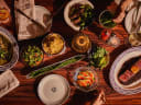 Southeast Asian cuisine with Thai & Vietnamese influences; retro-futuristic vibe