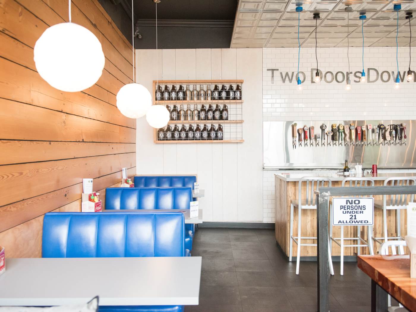 My partner and I went to our previous usual burger spot but their fryer was broken meaning no fries, so I reluctantly started looking for alternative options. Luckily it led us to 2 Doors Down, which an acquaintance had recommended. Despite the weird cluster of construction around its entrance and hard to find neighborhood parking nearby, once we got there it was really great.