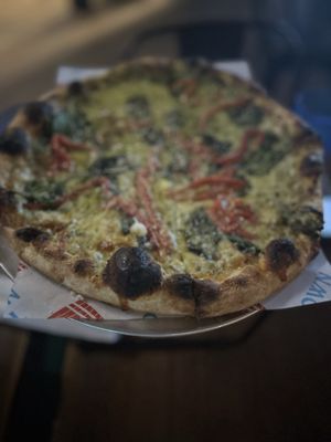 Thin-crust pizzas, sliders & upscale pub fare with rooftop