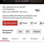 I made reservation more than a week ago for my husband's bday. We arrived 5 mins late for our Thursday 5:30pm reservation. I received a text about saying that they are only holding the table for 5 mins so I called them to tell them we were going to be 5 mins late. They said no problem. It wasn't busy at all when we arrived. It was maybe half full atound 6-7pm. This is a AYCE Japanese restaurant and there's only 2 menus. We chose to go with the $35 signature menu. Theres also a wagyu menu $55. The signature menu already had some pretty fatty meats. Don't think we needed to go with the Wagyu menu. You order the first round with the waiter and then you use a QR code to order more foods. You get to order 6 items at a time. Food came out really quick for the majority of the time. A couple of dishes came out slower. We liked the meats without sauces on them. The beef large and small intestines, and finger rib were too chewy to eat. There was no takowasa, beef abomasum, miso soup, and yukkejang. I was surprised that our waiter didn't know what items were unavailable. We liked the beef brisket, beef yakishabu, beef belly, pork belly, squid, and pork jowl. For appetizers , we tried the kimchi namul, beef bone soup, grilled miso eggplant, ponzu cabbage salad, squid karaage, gyoza, takoyaki, horse mackerel, agedashi tofu, corn cheese. Everything was good. Overall, very good price and decent quality. Service was good and easy to flag someone down. Surprisingly, I didn't smell like bbq afterwards.