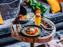 Our party ended up being much smaller, but we were seated rather quickly after arriving. The ambiance is everything you expect it to be, though the walkways are a touch narrow, it's full of plant life and has a good amount of tables to accommodate various party sizes. The bathroom was super clean, though like the establishment in general, very dark. Our waiter Sam was attentive and honest, and gave us great suggestions that aligned exactly with what we had in mind to order.
