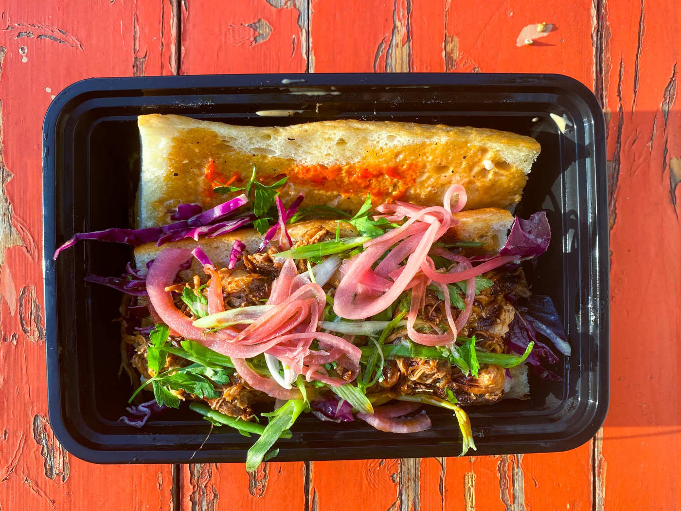 "The Cochon De Lait po’boy at Vic & Al’s—the Cajun restaurant in East Austin from the people behind Italian food trailer Patrizi’s—is something to behold. It’s chunks and strands of caramelized pig that have been slow-roasted for 18 hours in a pizza oven, topped with pickled red onion, herbs, and hot sauce. The sauce on the pork is so rich, it’s almost like a tonkotsu broth. It’s so good that when we found some leftover sauce in the plastic takeout container, we ended up just drinking it." - nicolai mccrary, matthew jacobs, raphael brion