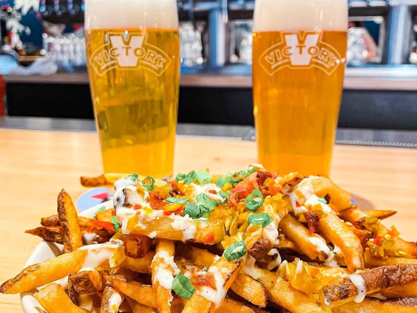 "Victory Brewing Company has a massive outdoor rooftop that’s filled with bright yellow chairs, a few mini plants, and a large u-shaped bar where you can enjoy any of the 30+ beers they have on tap. Located on the Ben Franklin Parkway, you can see every flag from model UN and look out at Museum Mile while eating pillowy Bavarian pretzels, fried cauliflower, buffalo wings, and a stacked double cheeseburger that’s dripping in cheddar. Bring a group of friends to the brewery and drink a few beer flights while people watching." - candis mclean, alison kessler