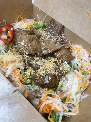 "If you ever feel indecisive at this vegan Vietnamese spot in Reseda, the friendly owner will shout, “Brother!” and point to the wall behind him: “Welcome to Vinh Loi Tofu. I pick, you eat.” Luckily, neither he nor any dish on his lengthy menu has let us down. Vinh Loi’s plant-based food is too flavorful to do that. A quick, easy lunch here might entail juicy lemongrass “beef” banh mis with heaps of sweet pickled carrots and oriental duck spring rolls, which are, as the owner calls them, “the best ones.” They come tightly packed with nearly caramelized teriyaki mushrooms and a fried egg roll that lets out a loud crack as you chomp in. The House Special soup, with its sweet-spicy peanut broth, rightfully belongs on every table. You’ll see a revolving door of regulars popping in to grab their to-go lunch, but we suggest enjoying yours there and then if you have time. The food arrives hot and fast, and you can get a personalized recommendation from your new brother if you want to add on anything else to eat. Food Rundown House Special Soup Also known as the S11, or the dish to get if you’re going to order just one thing. Vinh Loi’s broth is like what we imagine clarified peanut sauce tastes like: light but concentrated, with a nutty, sweet, and tangy flavor. The tofu-based “shrimp” and “fish” don’t taste like much but are fun to chew. We ordered our soup mild spicy and enjoyed the minor sizzle. photo credit: Sylvio Martins Oriental Duck Rolls These loaded spring rolls would do numbers on ASMR TikTok. The fried spring rolls inside are still hot from the frier and let out a giant crack when bitten. They come tightly swaddled by juicy teriyaki mushrooms. The peanut dipping sauce is wonderfully gingery, too. photo credit: Sylvio Martins Lemongrass Beef Bahn Mi A banh mi is only as good as its baguette (says us), and the ones at Vinh Loi tick all of the boxes: warm, fluffy insides and a crust that shatters with the softest squeeze. Our favorite protein is the lemongrass “beef” that has the texture of firm tofu but the fragrance of a bowl of bún bò xả ơt. photo credit: Sylvio Martins" - Sylvio Martins