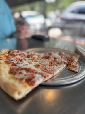 My opinion on it was...it was fine? The cheese was gooey/chewy, which I liked. Still a little too much sauce for my preference. The crust was probably the best part -- not gluey, with nice chewiness/crispness depending on the bite. It was pretty greasy overall though. Honestly, except for the crust, which was superior, I didn't find it too different from a Domino's cheese pizza. That being said, I'm hardly a pizza aficionado, lol.