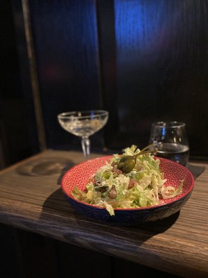 We got the Alphonse, Hayward, and Gazpacho Martini cocktails. The first 2 are excellent, if not too different from what you'd find at any high-quality cocktail bar in NYC. However, the Gazpacho Martini is truly creative and memorable. You definitely get notes of gazpacho, but it is not overpowering. I like to try weird drinks, but it is the kind of drink that even a slightly less adventurous drinker could enjoy while feeling very cool. :)
