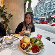 We sat outside and they had the covered area by the lake, and there were overhead heaters that I was skeptical about providing enough warmth, turns out to be it almost got a little too warm.