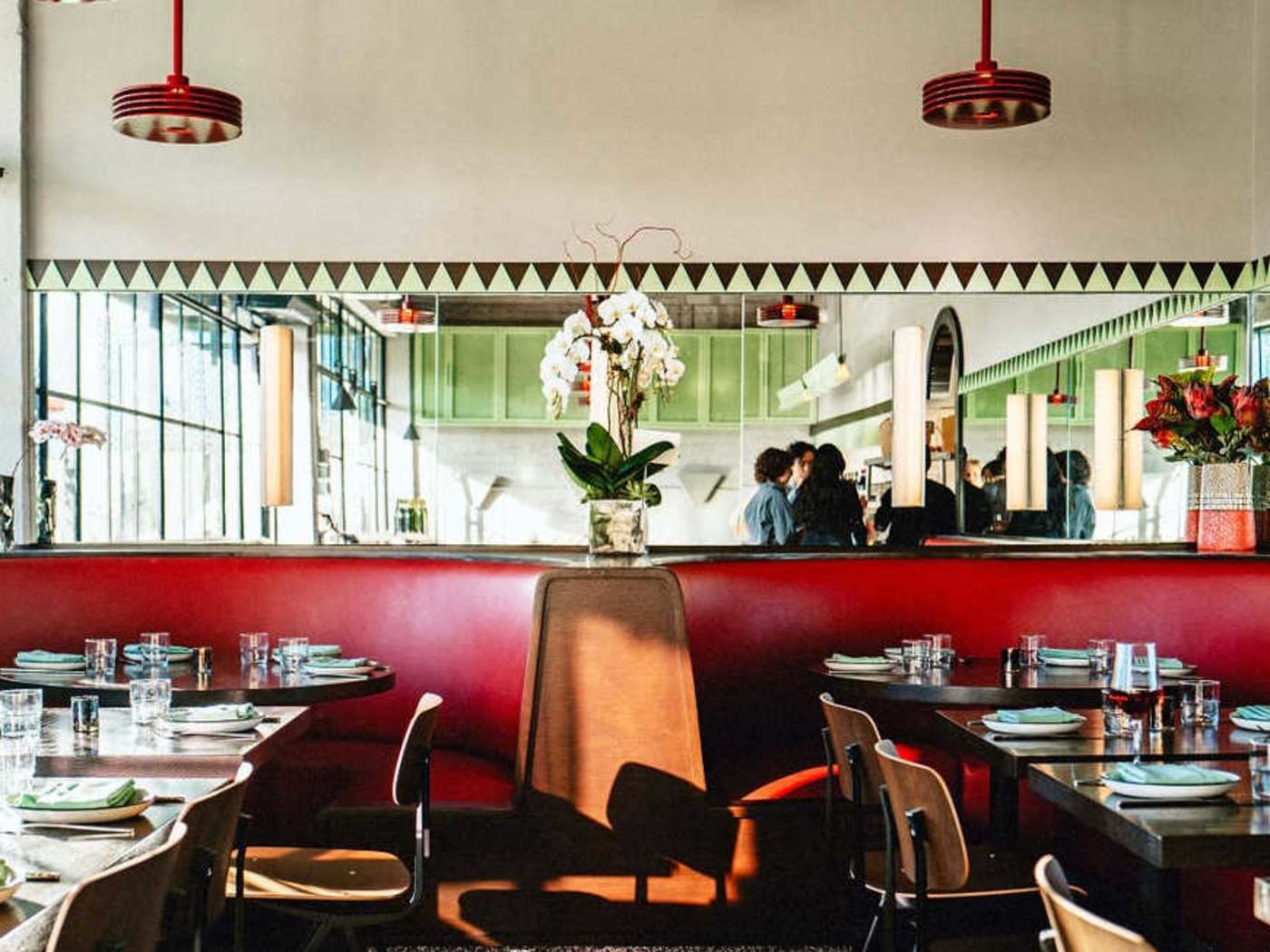 "A stylish, midcentury-esque, comfortable spot on the edge of the neighborhood, this wood-fired sourdough pizzeria from chef Miles Okabayashi — opened with his brother Sam and sister-in-law Jean — serves some of Northeast Los Angeles’s best pizzas, ranging from traditional to adventurous, and even uses the wood-fired grill for mains like whole branzino with a shiitake beurre blanc, best paired with wines curated from small producers. Starters show a unique touch, including Brussels sprouts doused with makrut lime and Snake River Farms meatballs bedded on a chipotle tomato sauce. Every pie comes from a homemade sourdough starter that Miles carried on a flight from New York to Los Angeles and a 48-hour fermentation. Order the classic margherita to let the blistered crust and balanced marinara do the talking, or go daring with a bacon onion jam pie with goat cheese, pickled chile, and chives; the lamb tzatziki pizza layers tomatoes, fior di latte, tzatziki, feta, Calabrian chile, mint, and saucy braised lamb — a combination that encompasses Los Angeles culture in a dazzling bite — and there’s also a marinara or a mushroom pie topped with raclette and garlic vinaigrette. The wine list spans bottles from Italy and Argentina plus a mineral-forward Albariño from Sonoma, and if you’re not feeling wine, ask the server to recommend a perfect sake and beer to pair with the food. Large windows, a patio, and lighting are some of its best assets, and the southwest-facing room rewards grabbing a reservation time when you can watch the California sky seep from day to night. Though there is a parking lot, it fills up quickly because the space is shared with croissant bakery Fondry and Queen’s Raw Bar & Grill; street parking is typically plentiful." - Mona Holmes
