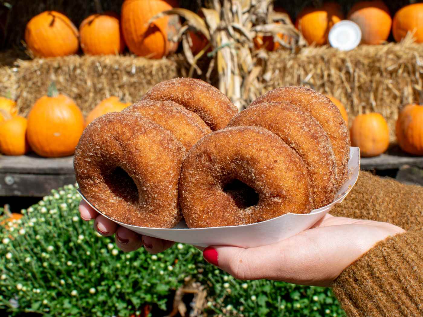 Get apple cider doughnuts. They aren't cheap, $6 for 6, but worth a try. They bake them every hour, so get a warm batch--the warm doughnut with a hot beverage on a chilly day is an incomparable experience.