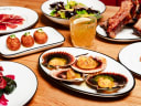 "Xuntos is the best Spanish restaurant on the Westside and the kind of place where dinner can turn into a three-hour party without really noticing. That’s because everyone in this homey, two-story spot in Downtown Santa Monica lets loose over vermouth cocktails, Basque cider, and however many rounds of garlicky gambas they can get in before their parking meter runs out. The menu is specifically northern Spanish—that’s right, LA has hyper-regional Spanish food now—and features things that belong on a José Andres travel special, including grilled baby squid balloons full of minced shallots, fatty seabass collars we eat like chicken wings, and scallops on the half-shell bathed in golden saffron butter. Get access to exclusive reservations at this spot with Chase Sapphire Reserve. New cardmembers get $300 in annual dining statement credits." - brant cox, sylvio martins, arden shore, cathy park