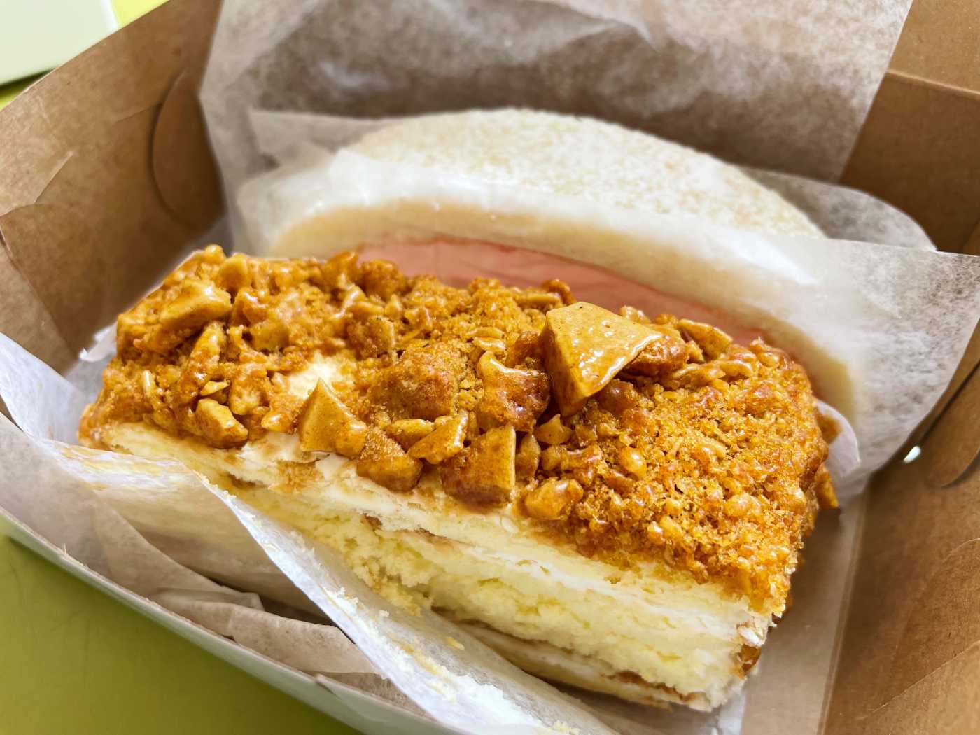 "The coffee crunch cake from Yasukochi’s Sweet Stop is San Francisco dessert royalty. Each slice of light, airy cake is topped with honeycomb-like candy that adds the iconic sticky, crunchy texture. It’s one of the fantastic baked goods coming out of this tiny spot—another is the assortment of roll cakes filled with lemon or strawberry cream. Pay attention to those, because the sponge cake is some of the fluffiest in town. This bakery operates out of Super Mira Market, and is cash only, so come prepared." - julia chen 1, lani conway