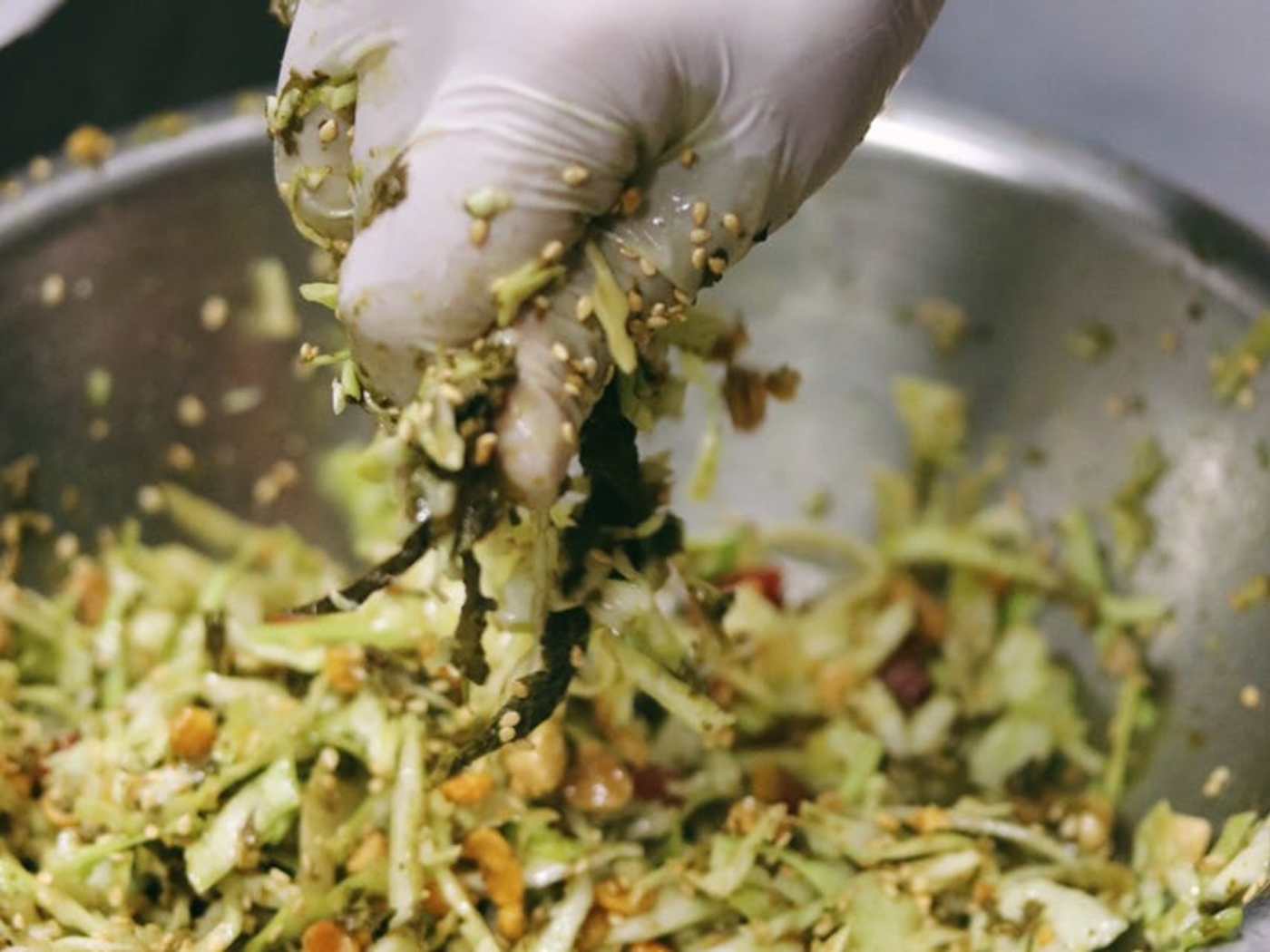 "Tea Leaf Salad The tea leaf salad from Burmese, Please! combines all of our favorite things - pungent fermented tea leaves, fried garlic and shallot bits, fish sauce, and the sweet, sweet sense of accomplishment when we assemble it all together at home (even though we “technically” didn’t “cook” or “prepare” any of it). No, all of the actual prep work is done by chef Jessie Nicely, the owner and creator of the Arts District pop-up, who drops a new menu of Burmese staples on Instagram once a month. Luckily, the tea leaf salad is always available. This comprehensive kit contains at least 45 different accoutrements, and is a fun way to practice mise en place." - the infatuation los angeles crew