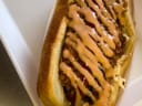 "A University food-court stall serving an oversized signature hot dog topped with cream cheese and sriracha-honey mayo on a toasted bun, available in a vegetarian version and paired with sides like wings, fries served plain or bulgogi-style, and Fritos pies." - Brittany Britto Garley