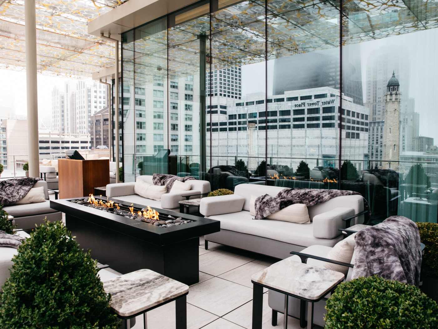 "Straddling an indoor/outdoor perch six stories above the Magnificent Mile, this minimalist, metallic-clad lounge blends five-star polish with a convivial, neighborhood-bar spirit, executing classics with confidence. The Tommy’s Margarita and Espresso Martini are reliable choices, while a rotating Something New section keeps the program current—the Mezcal Papi (mezcal with vermouth, Campari, and hibiscus) is cited as a recent standout." - Brad Japhe