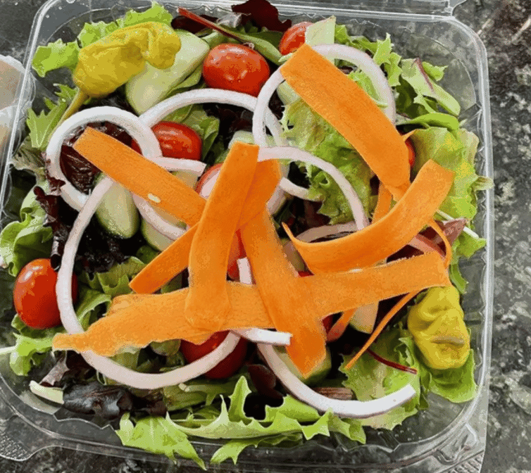 The Athena had plentiful chunks of nicely seasoned grilled chicken and well portioned amounts of mixed greens, cuke, feta, tomato, and whole-pitted kalamata olive (held the onions on this one). The greek dressing was applied just right, no drippy mess when biting but enough to add flavor.