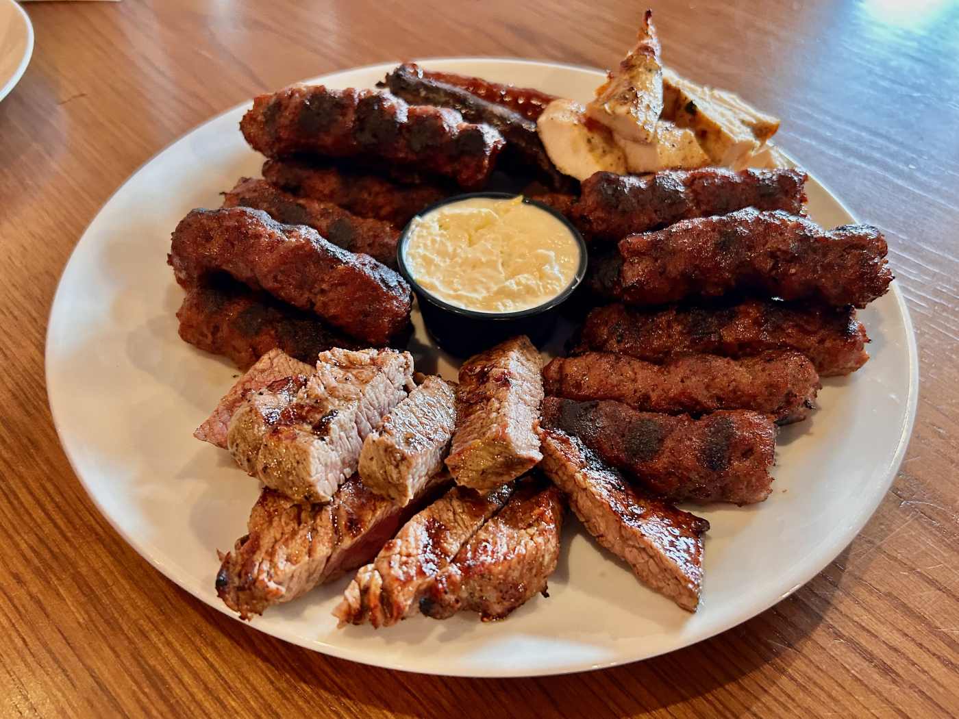 NY-style pizza, Albanian dishes, kebabs, burgers, and coffee